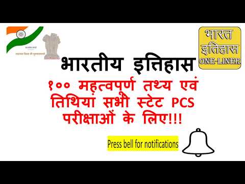 भारतीय इत्तिहास || pcs || १०० महत्वपूर्ण तथ्य एवं तिथियां